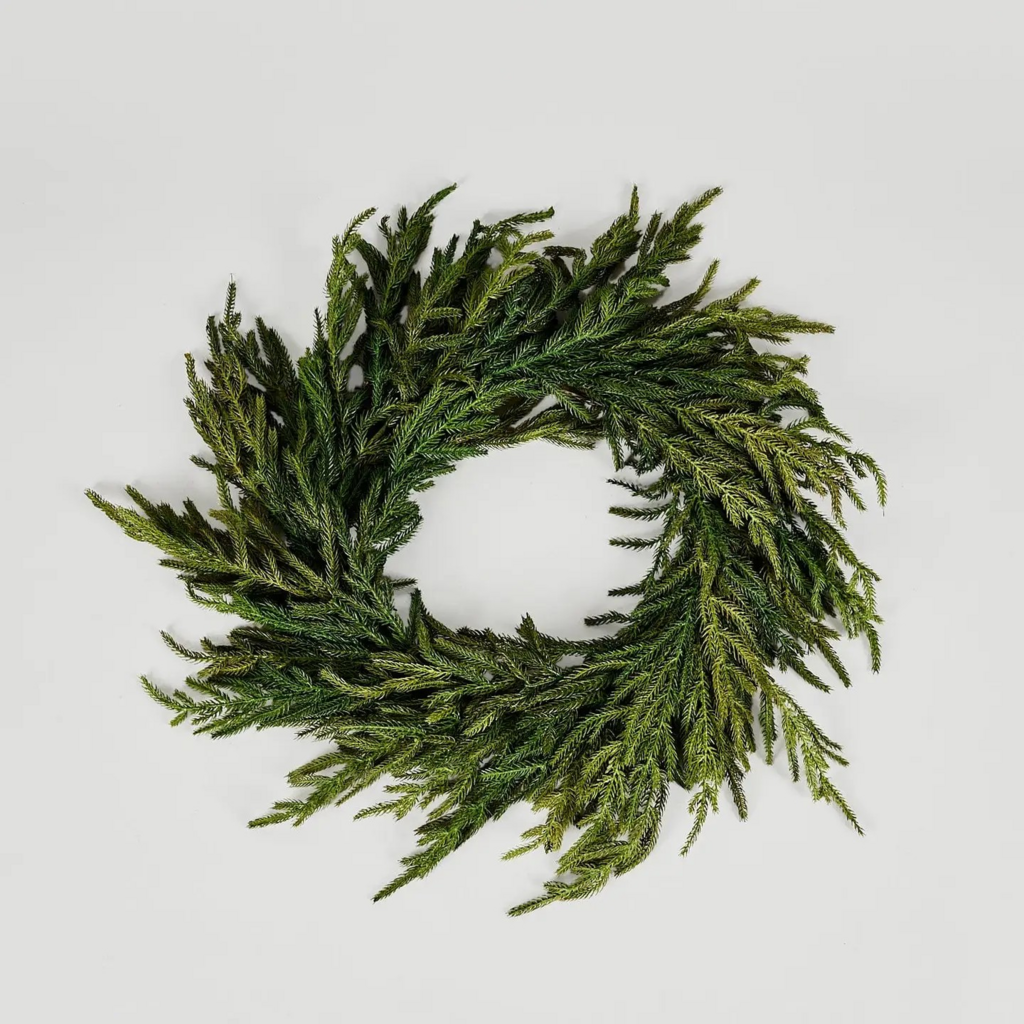 our faux Real Touch Norfolk Pine Branch is among the most realistic artificial holiday greens, and it's a great choice for creating amazing Christmas centerpieces. Soft-to-the-touch pine sprigs in natural green color perfectly mimic the feel and the look of nature. Style this spectacular greenery in your tall woodland vase arrangements, winter wedding bouquets, and boutonnieres. Even make a stunning 6-foot garland using 3 branches. - 36" Tall x 10" Wide