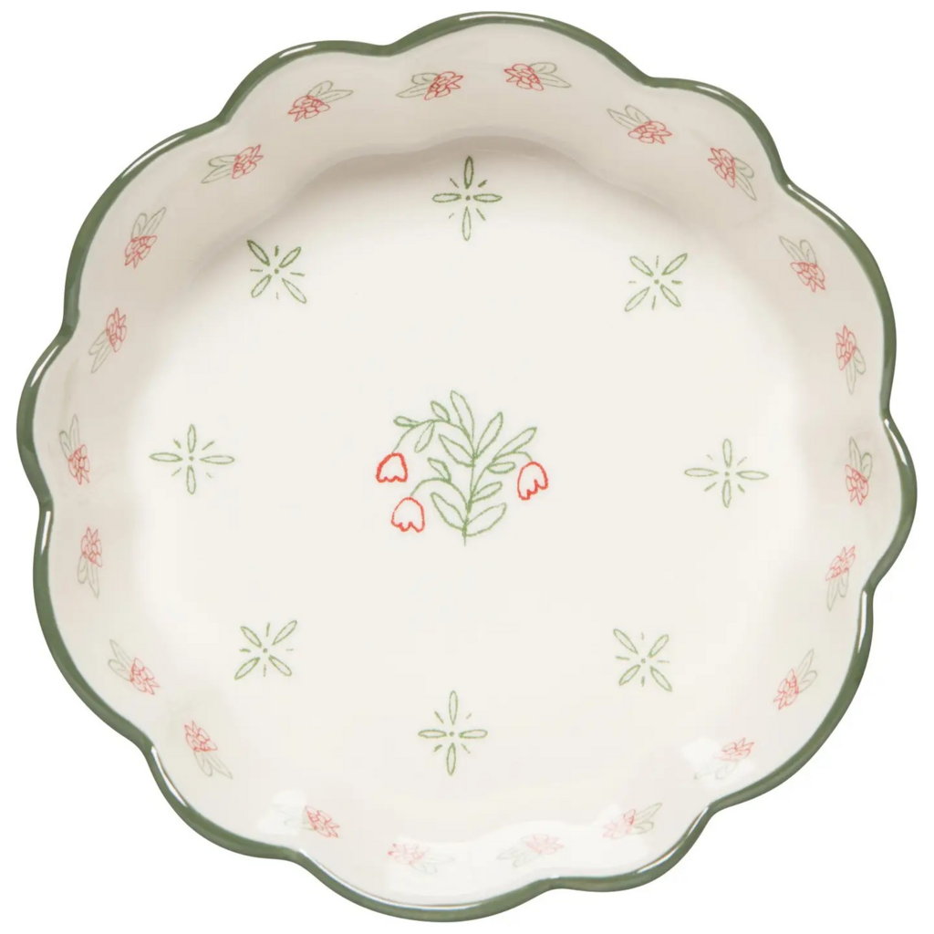 Delicate flowers in a quaint palette of sage green, wine red and bright white exude rustic farmhouse charm with this Camellia bowl. 5.75in