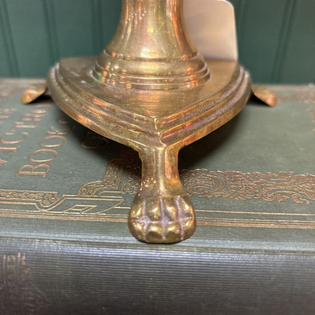 Elegant and timeless, this 10-inch solid brass candleholder adds a touch of warmth and sophistication to any space. 10" tall by 4" in diameter.