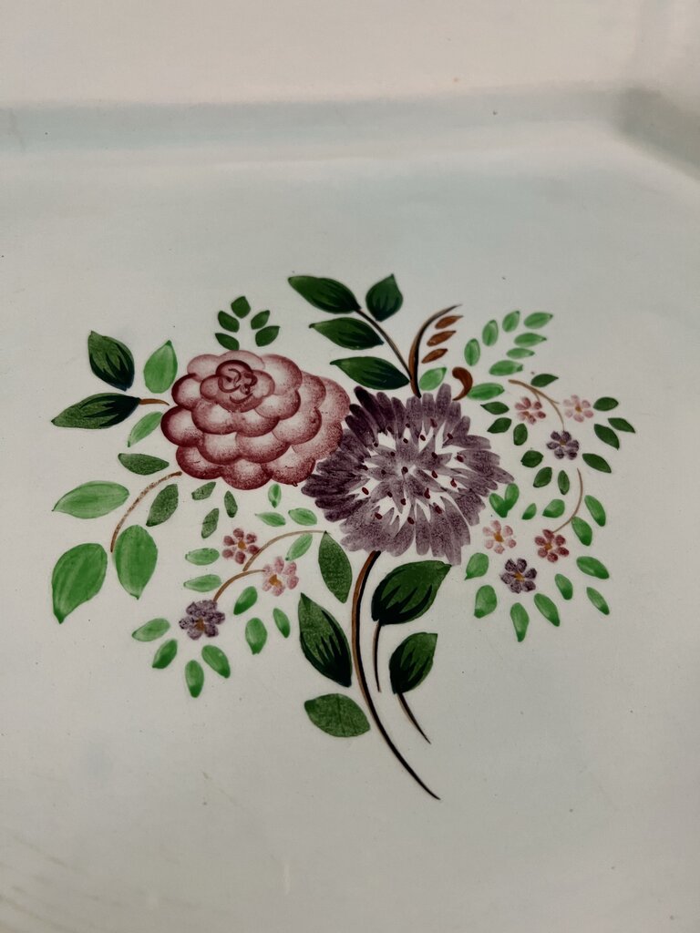 This hand-painted ceramic plate features a blue floral design, measuring 10in across. This plate would be a perfect way to add a touch of vintage to any part of your home.