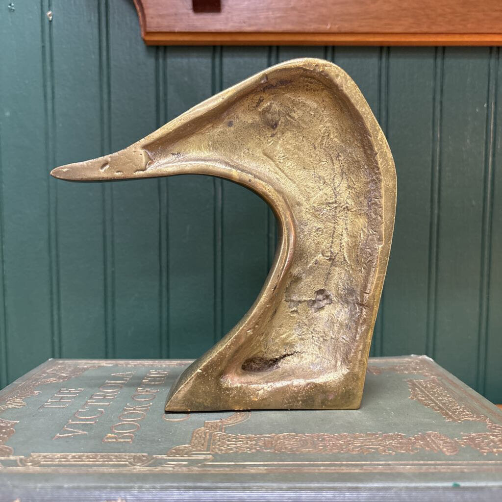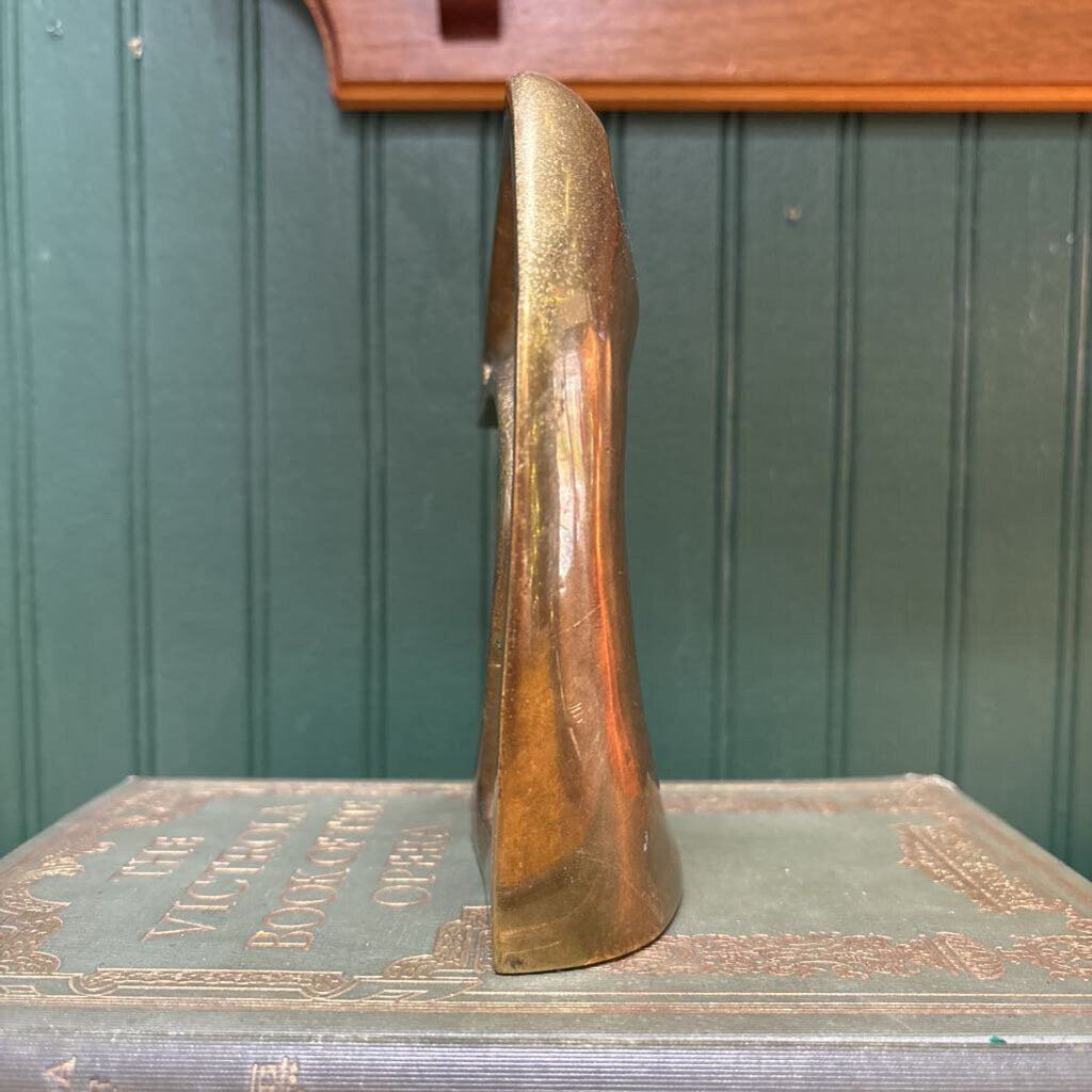A solid brass bell crowned with a unicorn handle, blending function with a touch of fantasy. Its golden shine and clear ring make it both a charming decorative piece and a practical little bell. 3" in diameter by 5.5" tall.